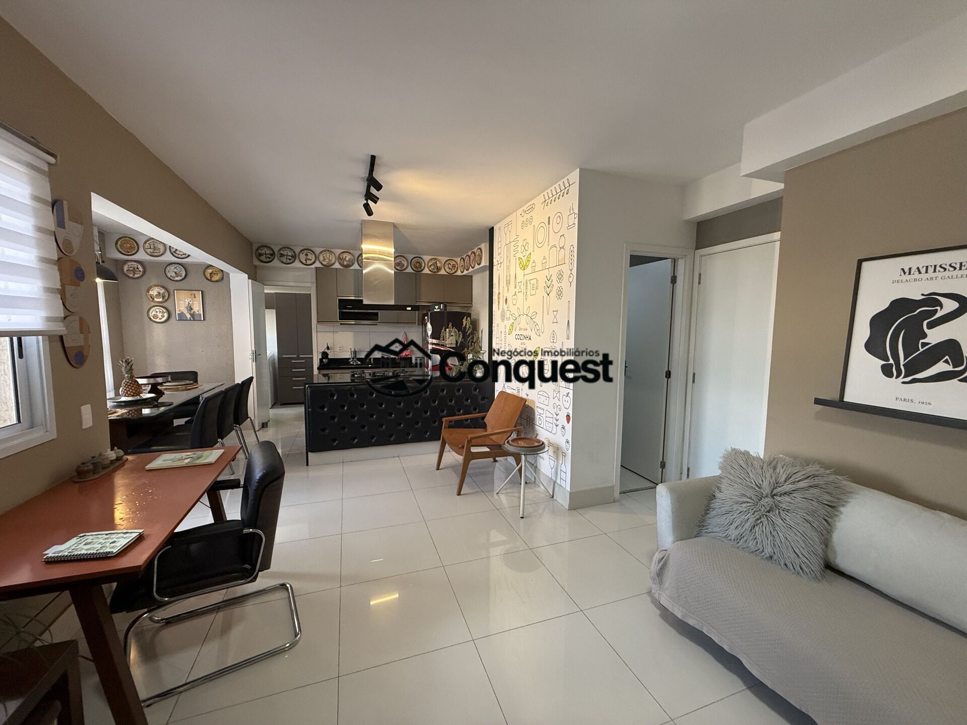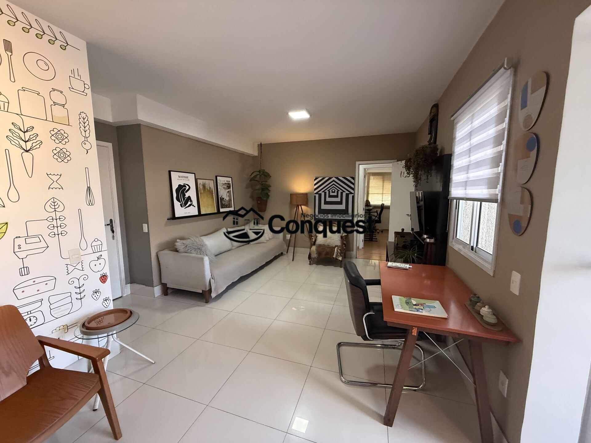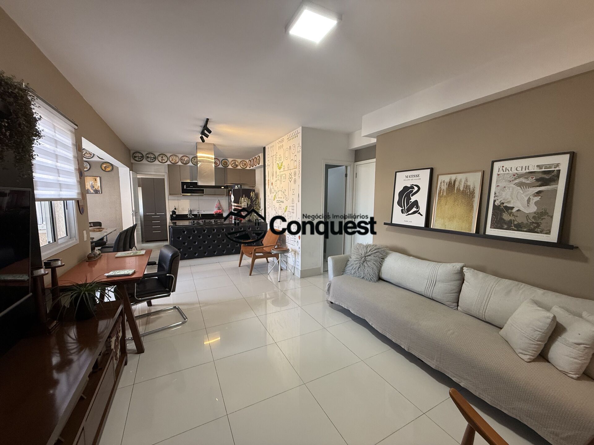 Acabamento de alto nível: porcelanato nas áreas sociais, laminado nos quartos, luminárias modernas e detalhes de design.