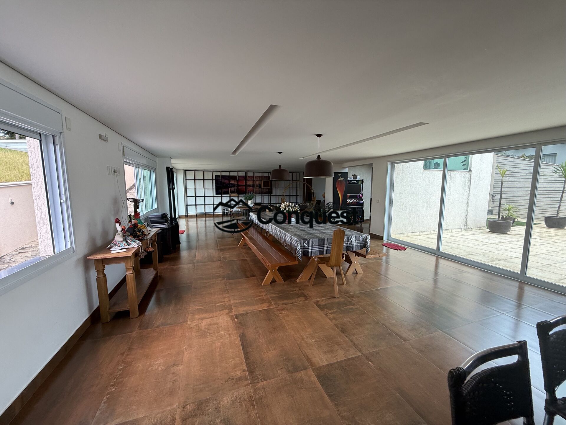 · Area Gourmet com churrasqueira, mesa rustica, decoração, armários, granito, conjugada com sala de jantar, toda com fechamento blindex!